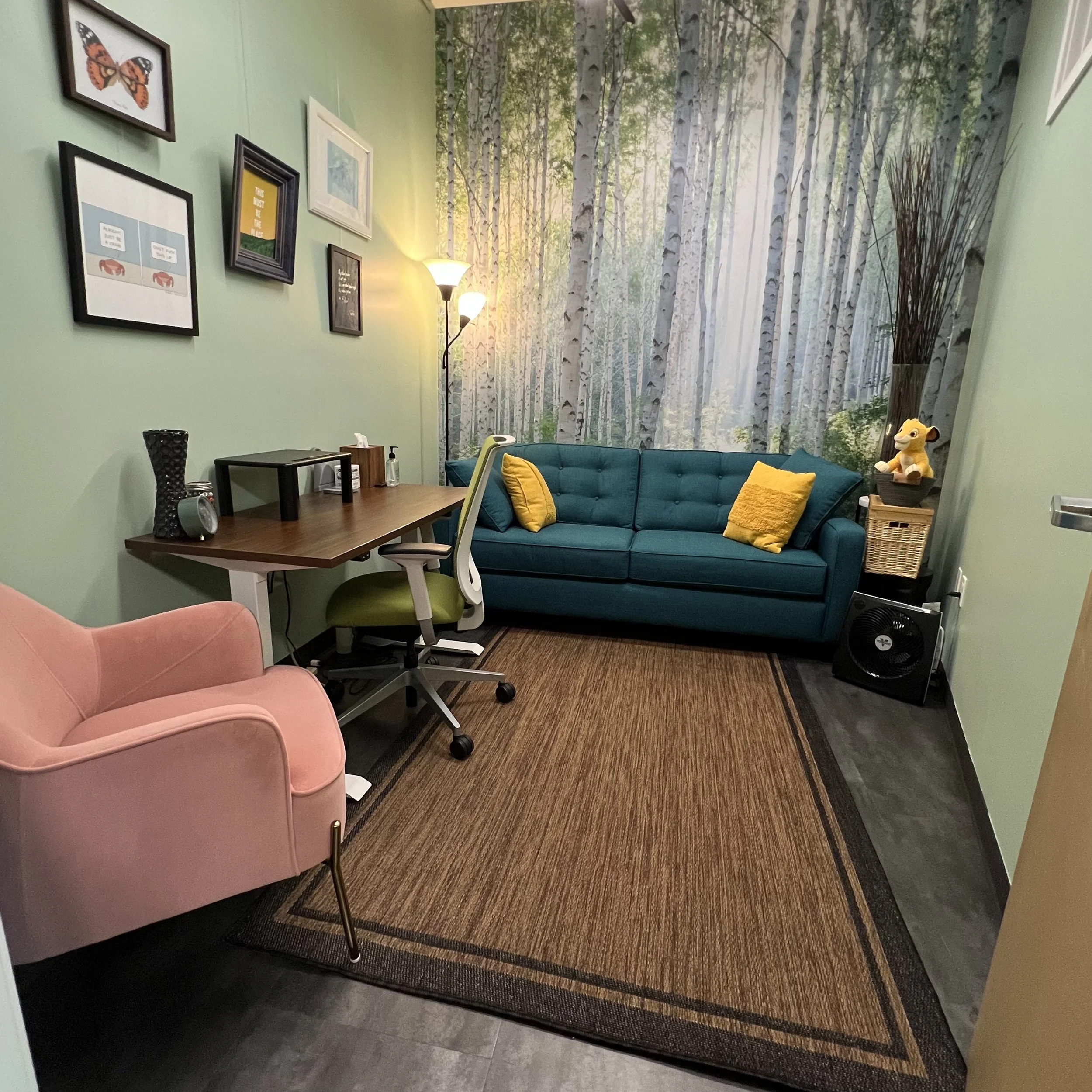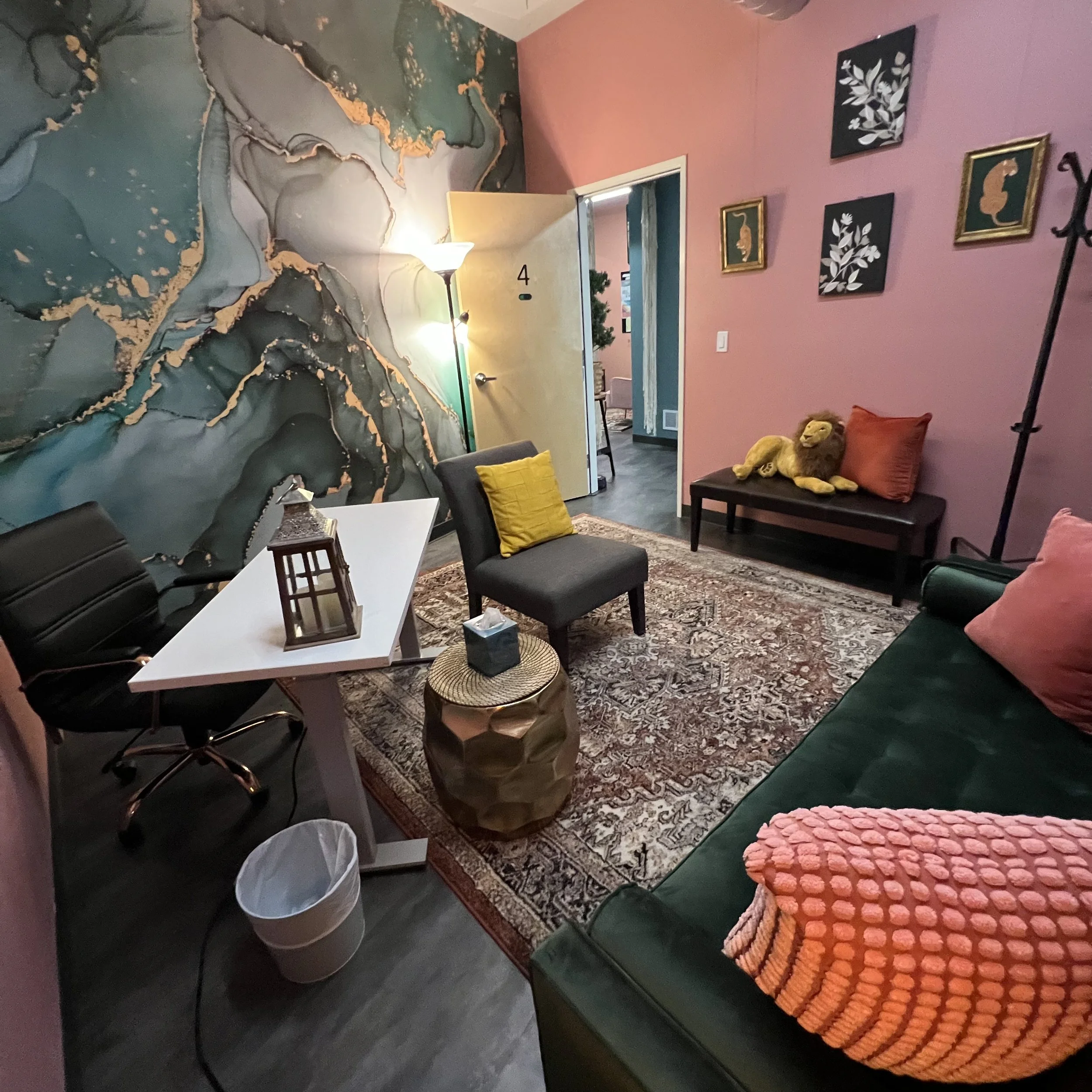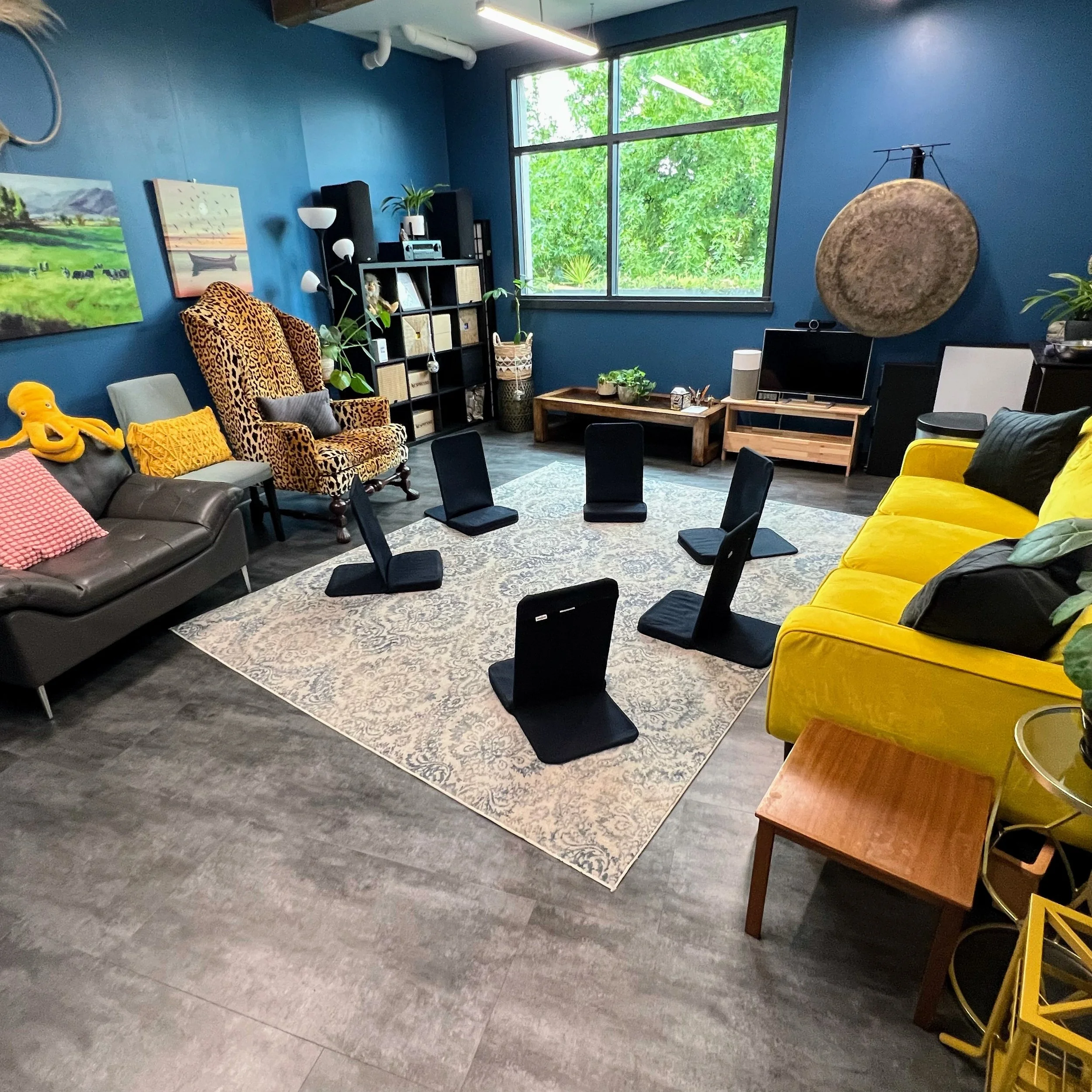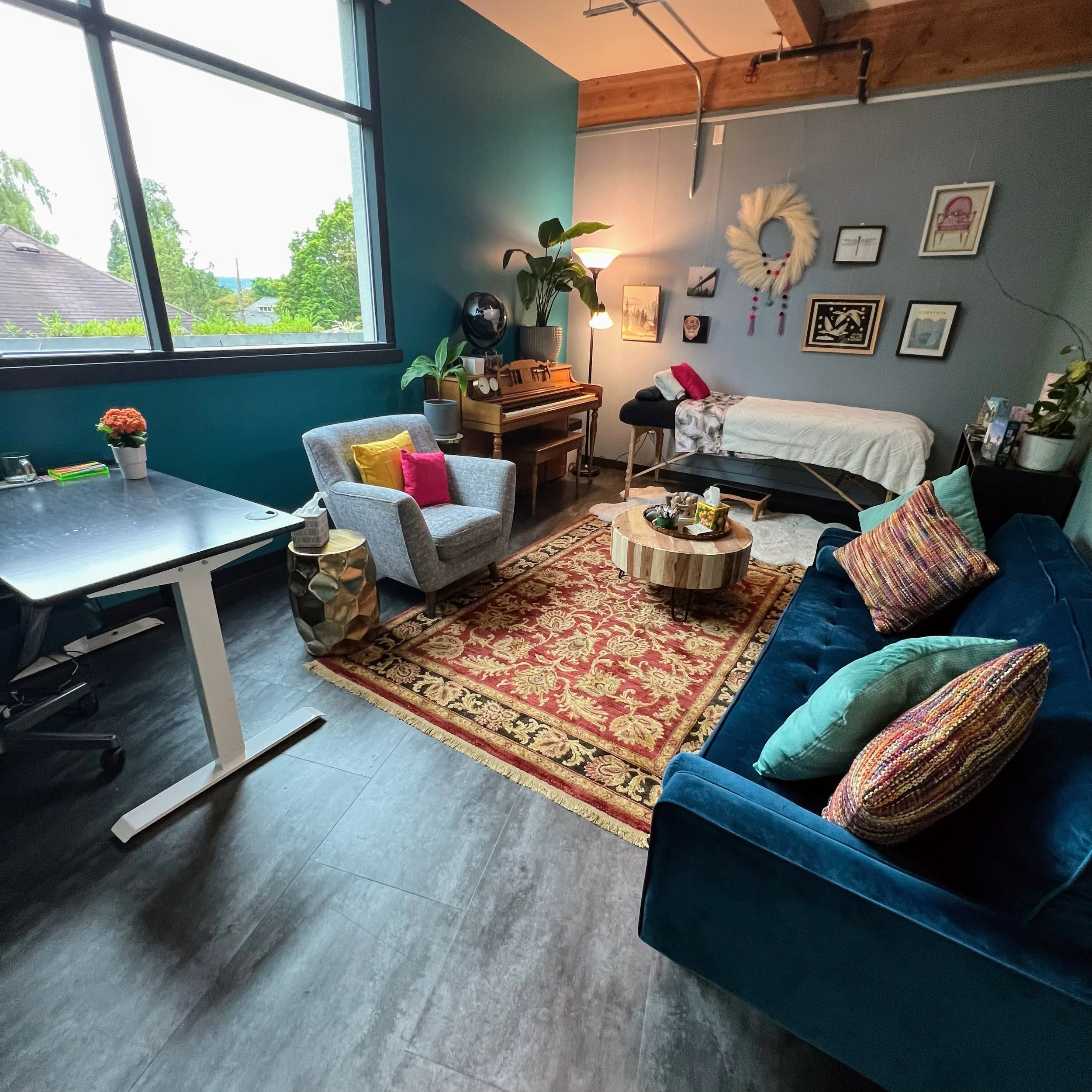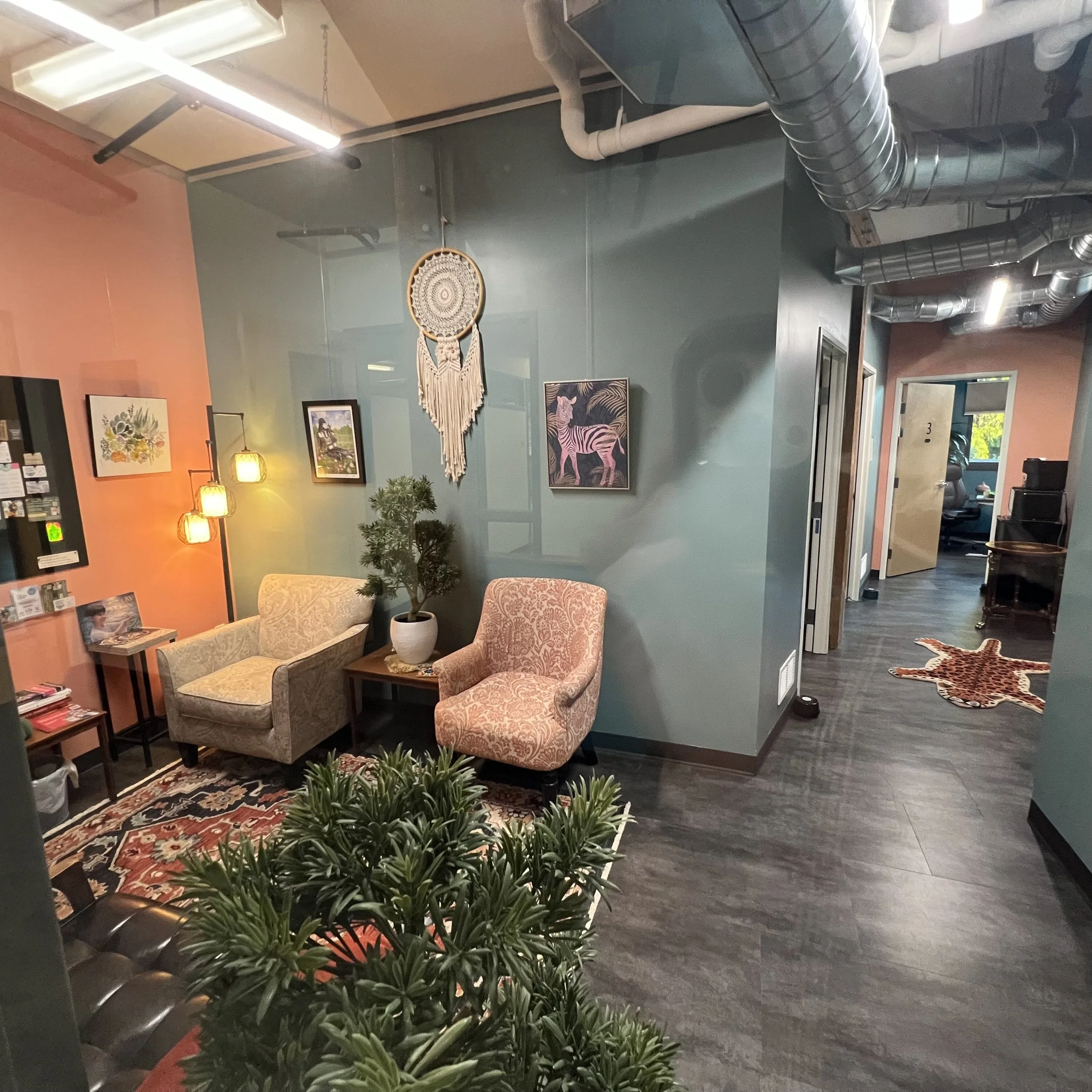 Included: large group room reservations for no additional cost, Wi-Fi, lobby with filtered water and tea for clients, ADA accessibility, gender-neutral bathrooms, security, community supplies like tissues, cleaners, community with monthly potluck get-togethers.
